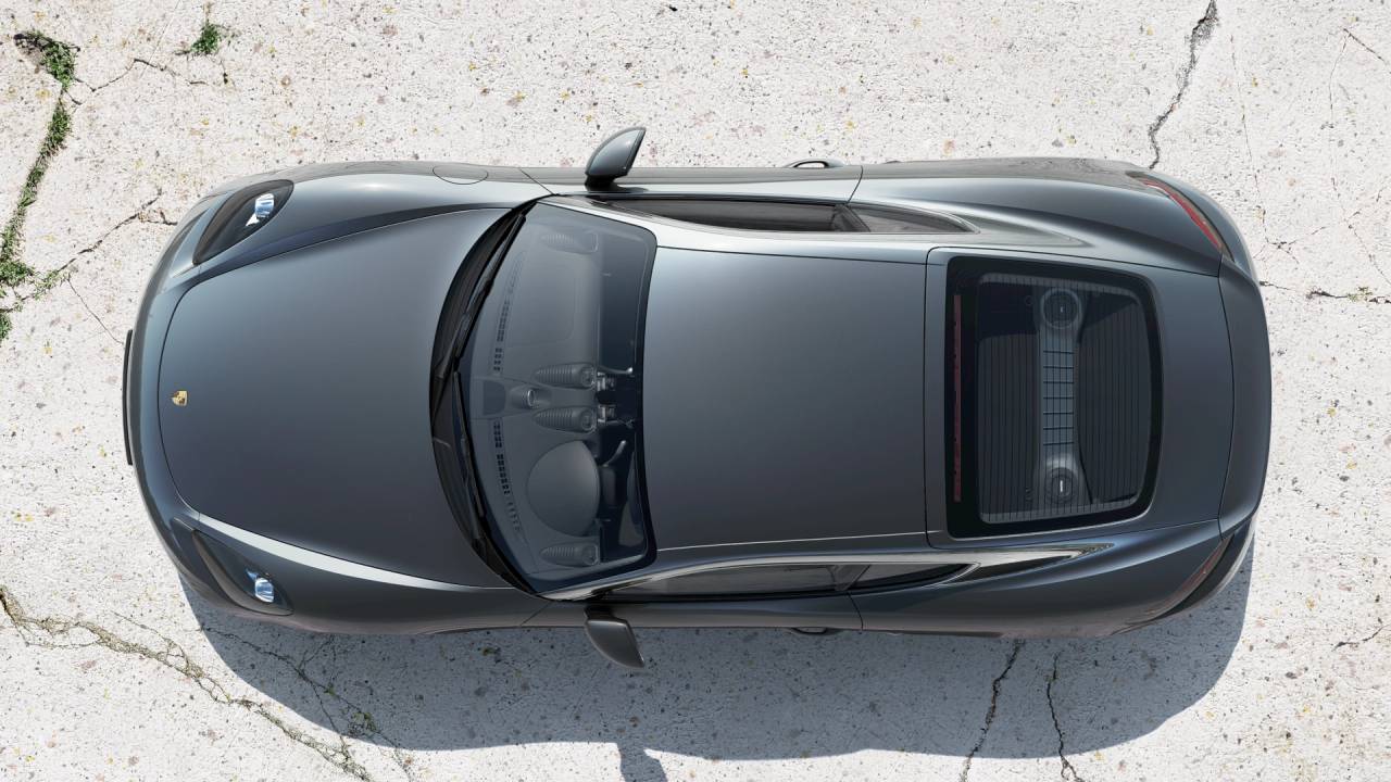 Roof spoiler painted in Black (high-gloss), Exterior mirrors painted in exterior colour, 'PORSCHE' logo painted in Black (high gloss) including deleti...