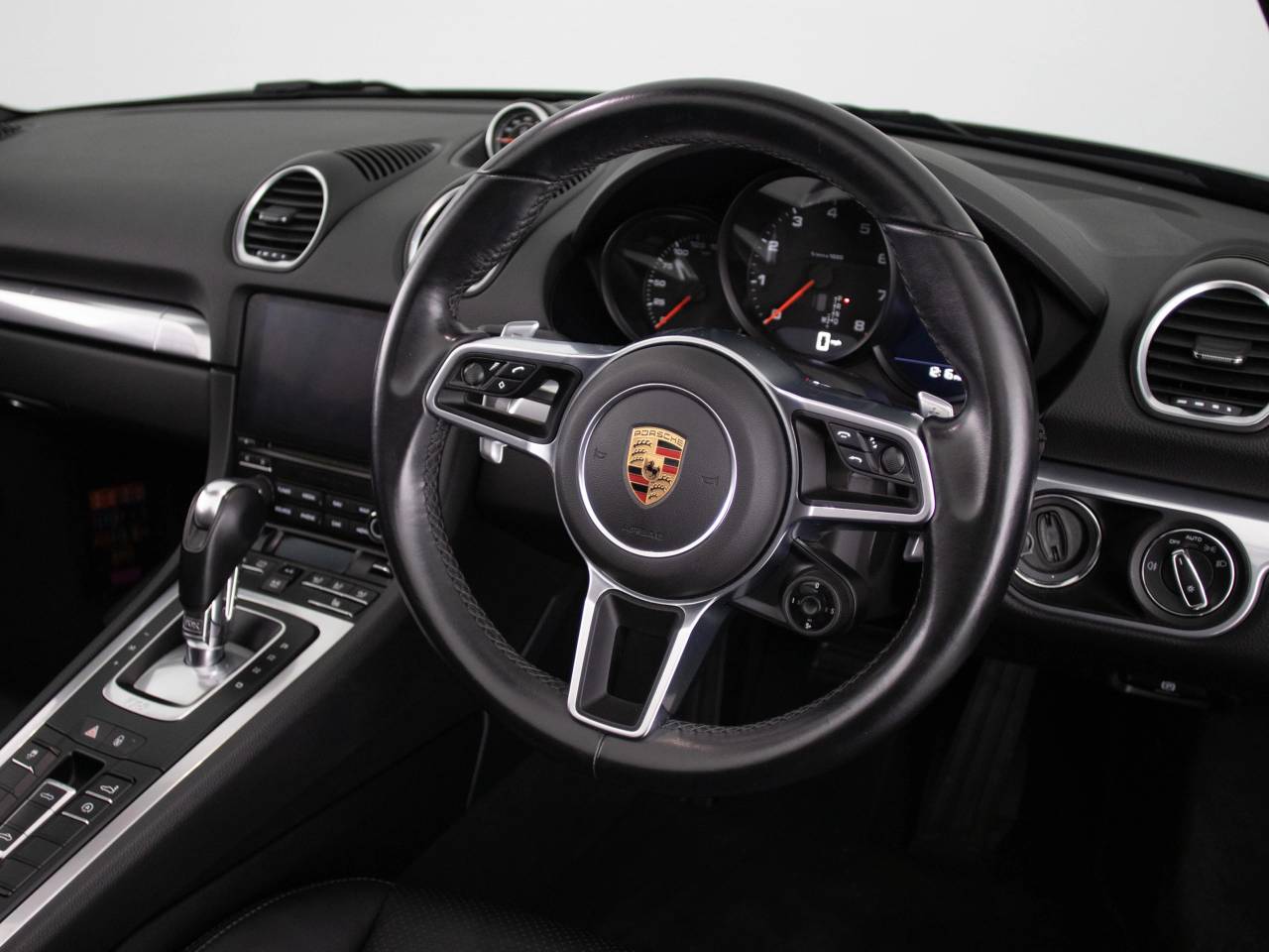 Roll-over bars painted in exterior colour, Model designation on doors in black, ‘718’ logo painted - Black, Porsche Doppelkupplung (PDK), Sports tailp...