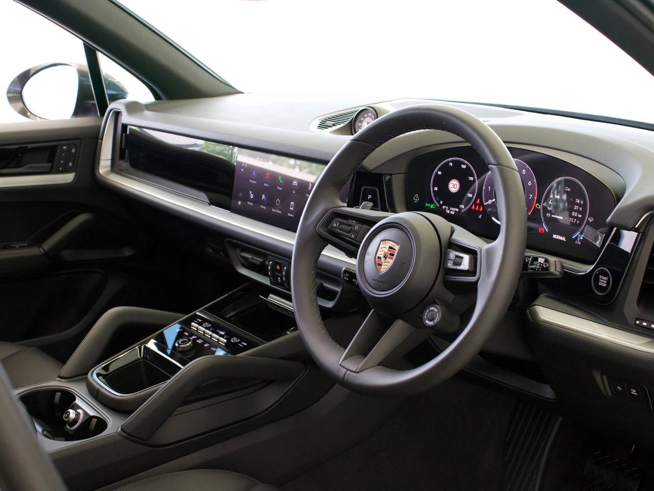 Panoramic roof system, Side window trims and front inlays in Black (high-gloss), Electrically extending towbar system, 'PORSCHE' logo painted in Black...