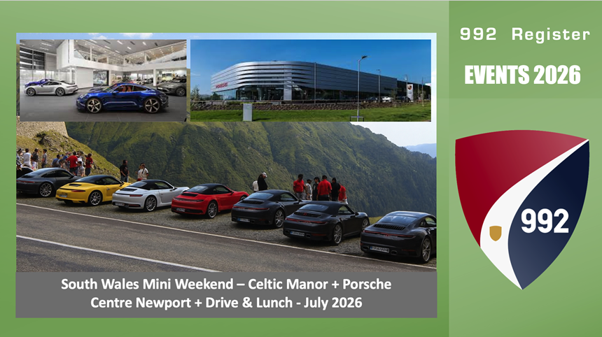 The 992 Register invite you to join us for a weekend in South Wales. With the option of staying Friday night at Celtic Manor Resort OR meeting at Porsche Newport for our visit on Saturday morning.